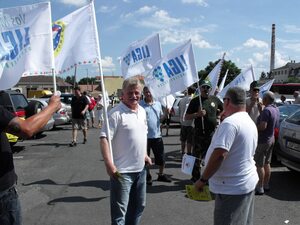 Öt szakszervezeti konföderáció hirdette meg és szervezte az autós felvonulást, demonstrációt és petíció átadását. Délután fél háromkor a város szélén lévő Tesco hipermarket parkolójában már látszott, hogy a szervezők jó munkát végeztek. Egyre több autó érkezett, majd vezetőik és utasaik sorra szedték elő a zászlókat transzparenseket, kisebb és nagyobb plakátokat.
