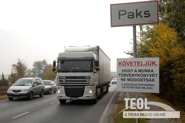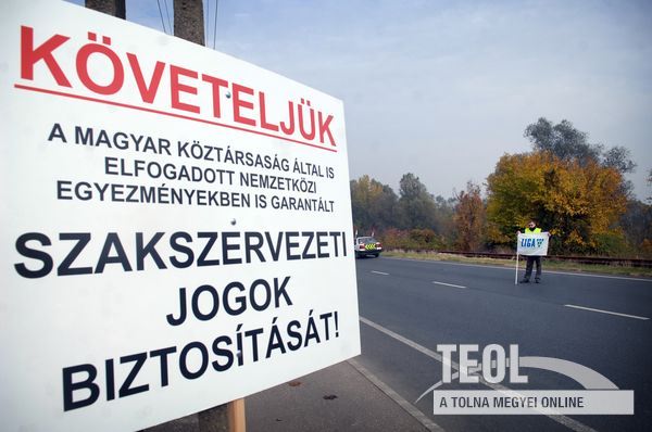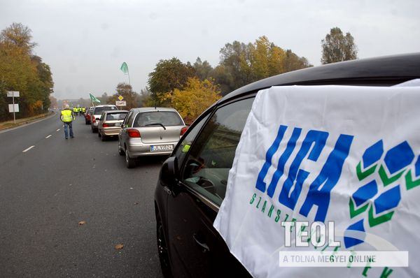 Szekszárdon, az 56-os főút Budapest felé kivezető szakaszán nyolc személygépkocsi áll az úttest jobb oldalán, a forgalmat rendőrök irányítják. A félpályás útlezárás nem okoz komoly fennakadást a forgalomban; a gépkocsikon Liga szakszervezeti tömörülés, az EVDSZ, az ADÉSZ és az MSZOSZ zászlói láthatók. Néber Tibor, a demonstráció szervezője a helyszínen azt mondta: nap közben 10-17 gépkocsival zárják le az utat.