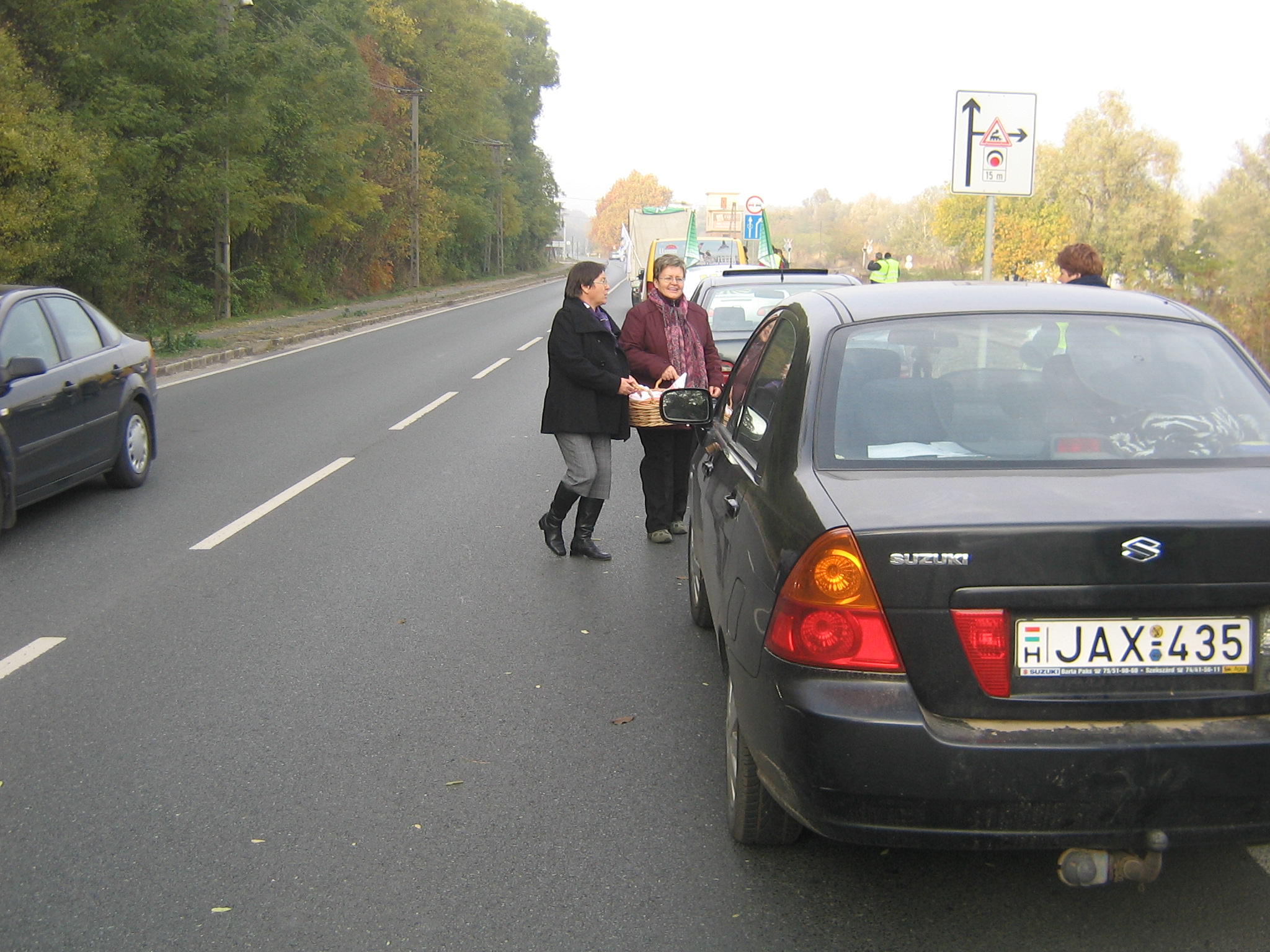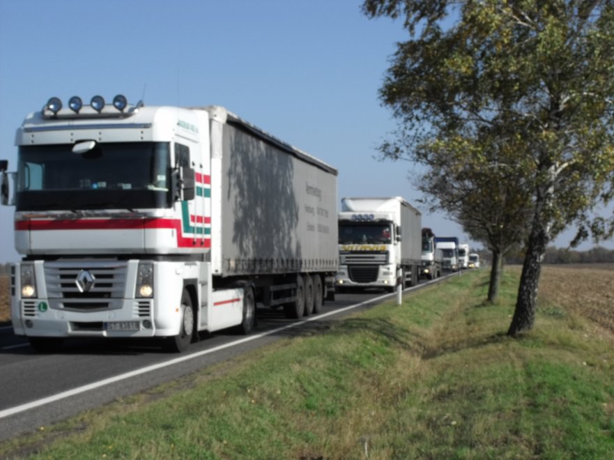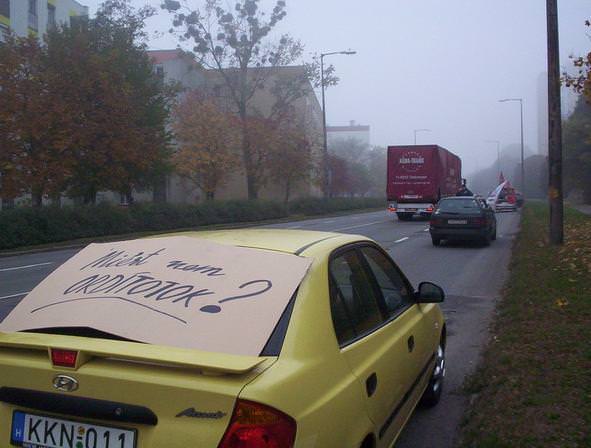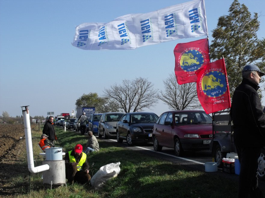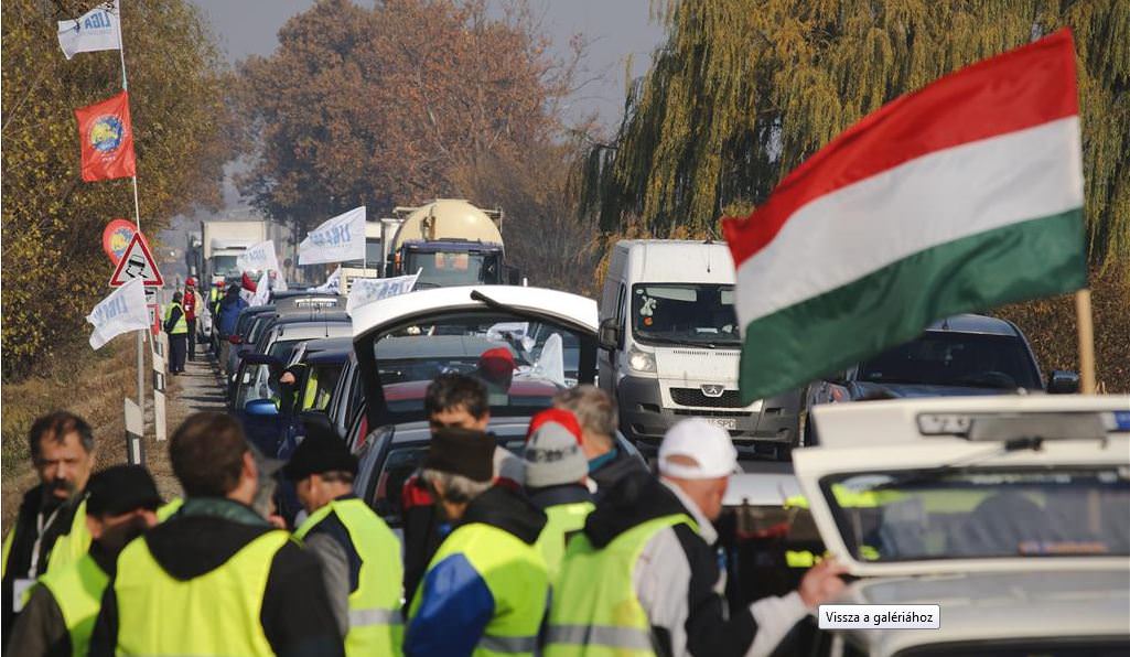 Lépésben halad a forgalom és csak az egyik sávon Győrben az 1-es úton, ahol 25 autóból álló konvojjal zárták el a félpályát a demonstrálók péntek reggel. Alper László, a tiltakozás helyi szervezője közölte, várhatóan egész nap tartani tudják ezt a létszámot. A feltorlódott autósok körül többen azt kiáltották nekik lehúzott ablakjuk mögül, hogy "Egyetértünk veletek! Jogos a tiltakozás!" Többen dudáltak és biztatóan integettek nekik. Csak egy autós mutatott bosszankodva egy nem szép jelet kezével.