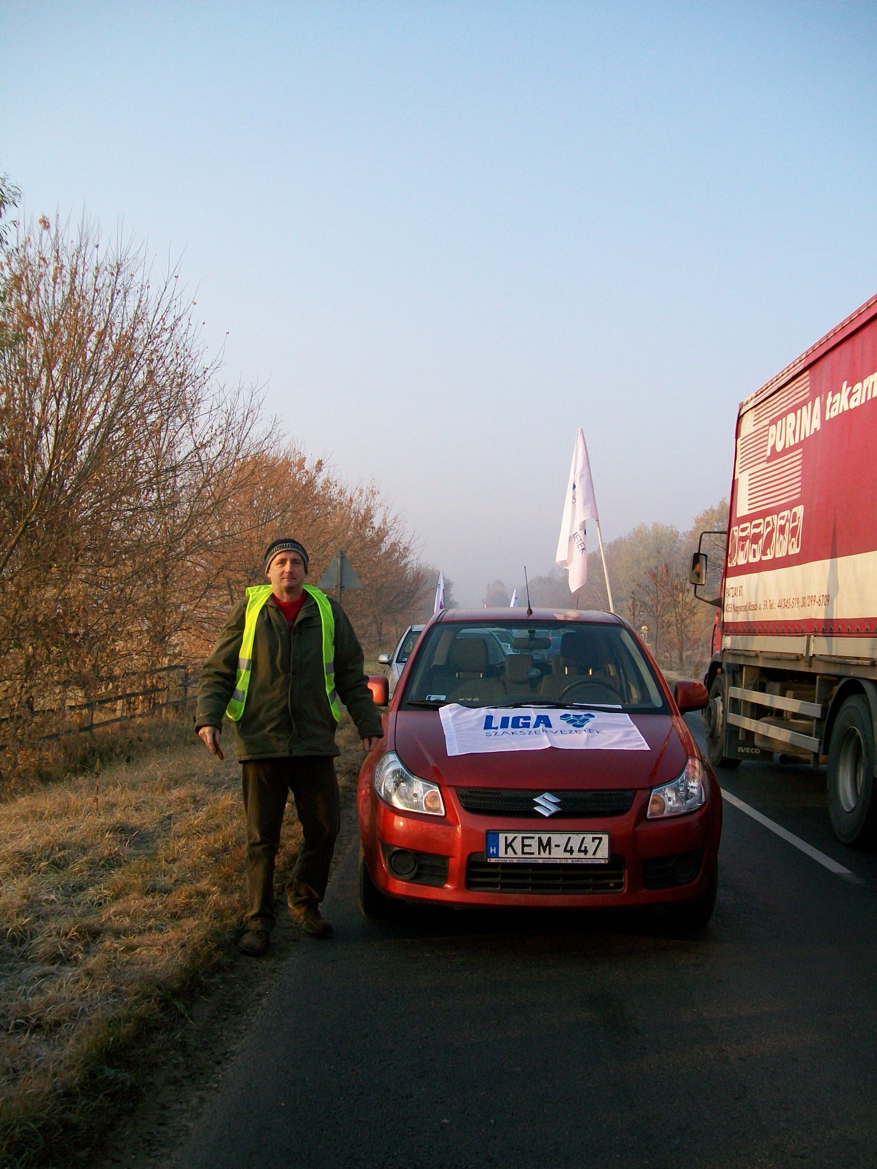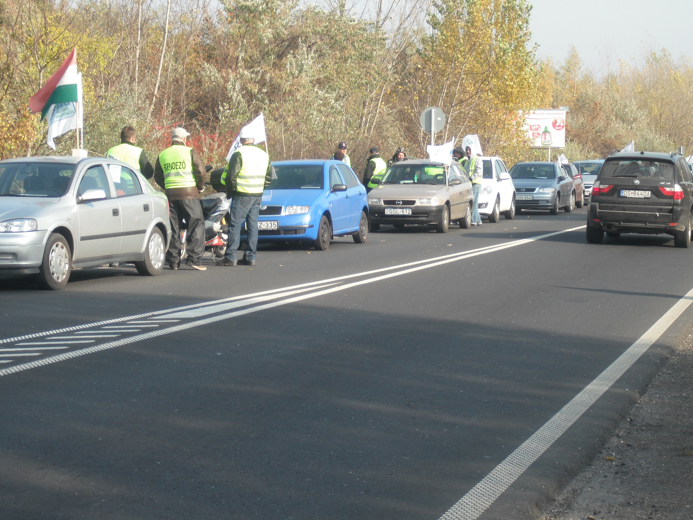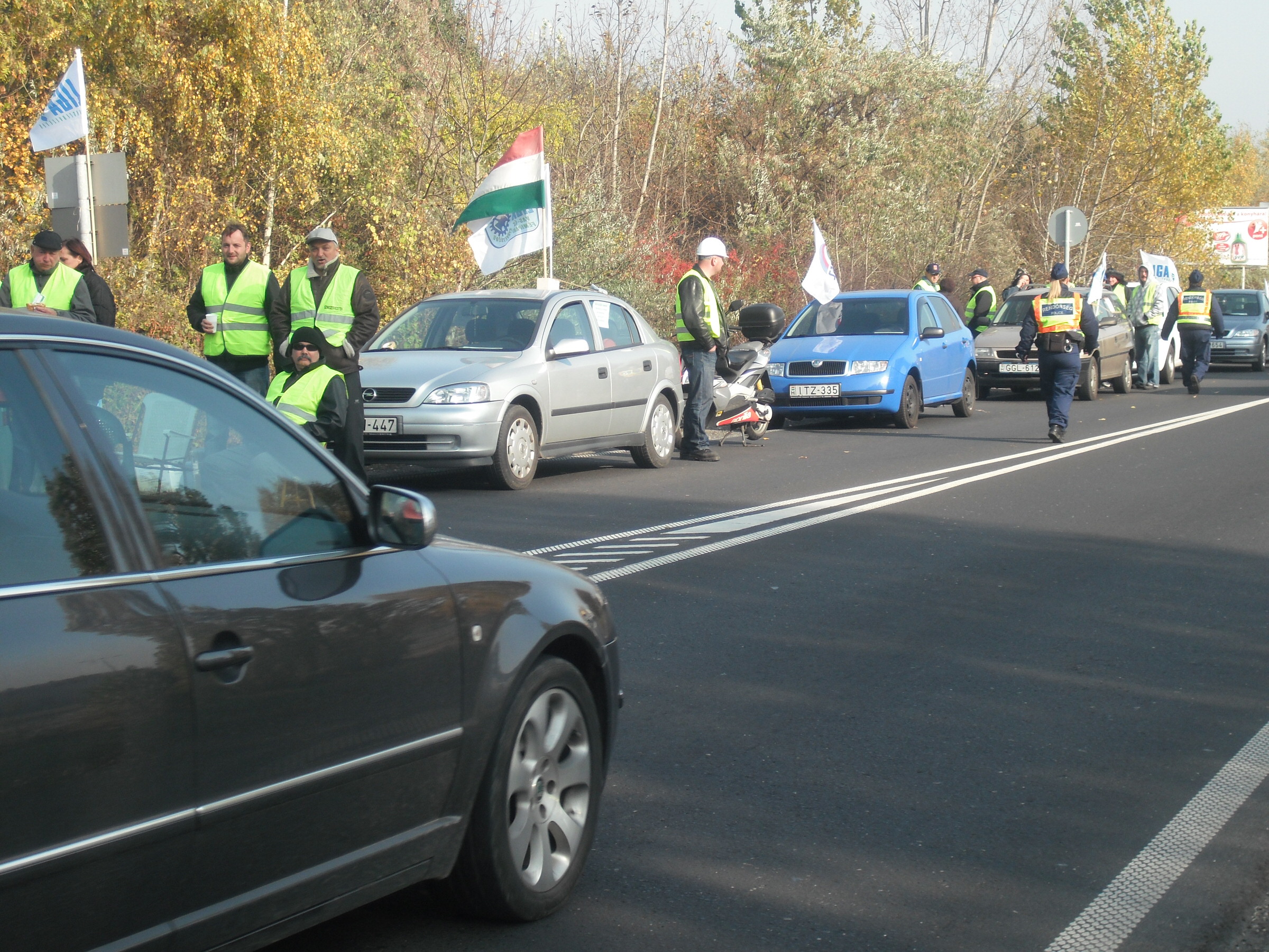 Körülbelül 25-30 autós vonult ki a Debrecen és Mikepércs közötti útszakaszra nemzeti színű zászlókkal és transzparensekkel, akik forró kávéval és teával készülnek a 24 órás demonstrációra. A szervezőktől megtudtuk, hogy folyamatosan érkeznek majd újabb tüntetők a helyszínre.