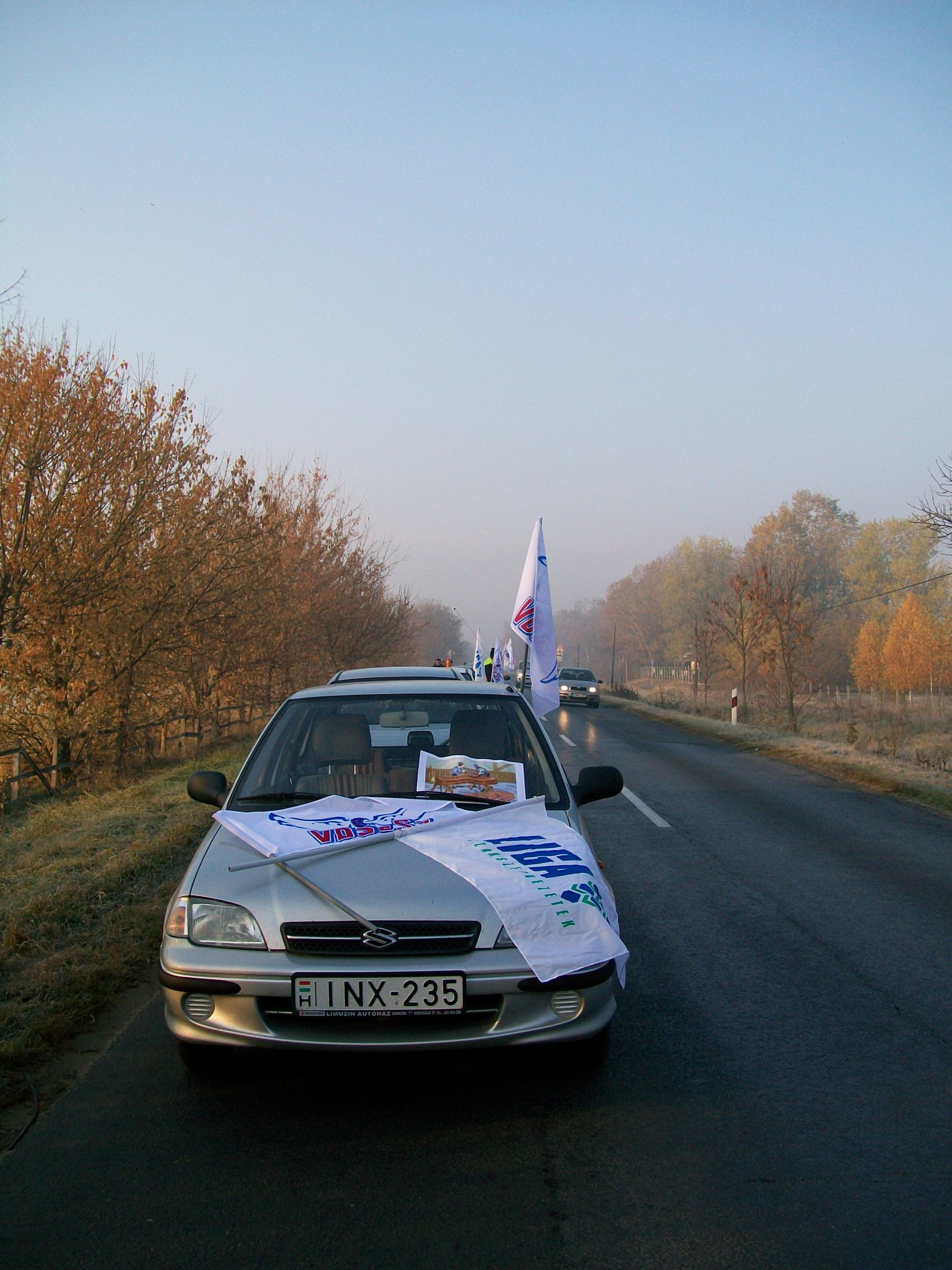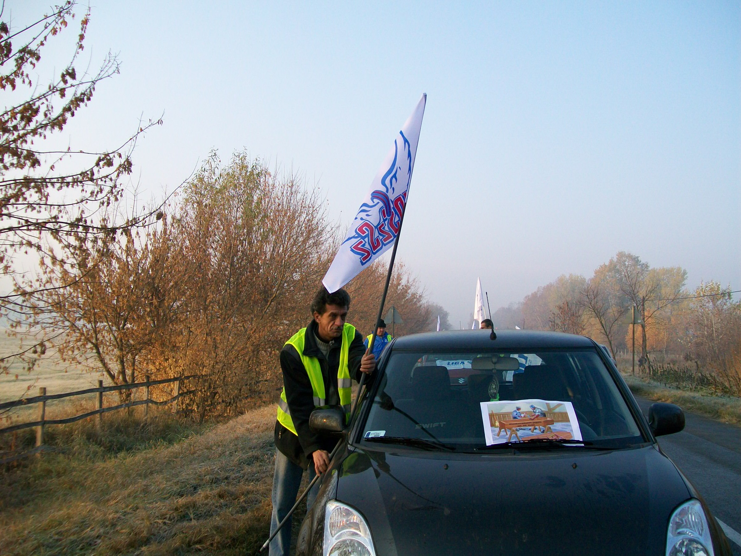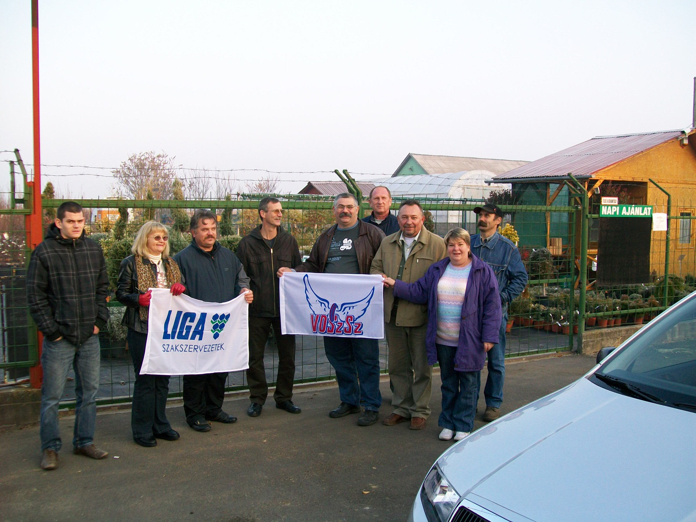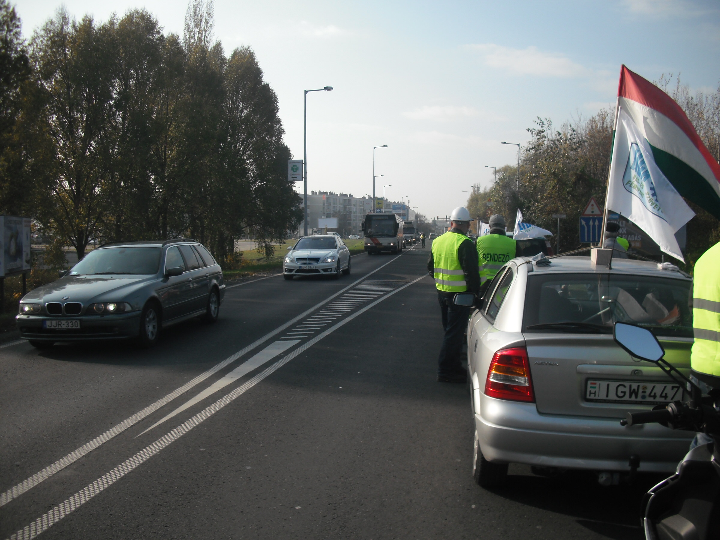 A kocsioszlop - amelynek több autóján az Audi Hungária Független Szakszervezet zászlója lobogott - percekkel hét óra után állította le fél pályán a forgalmat, már komótos felvonulásával is jelentős dugót okozva a rendszerint zsúfolt főúton. A járműgyári érdekképviselet mellett a Rába Rt. Munkavállalók Szakszervezete és a Vasas Szakszervezeti Szövetség csatlakozott helyben a Liga országos akciójához.