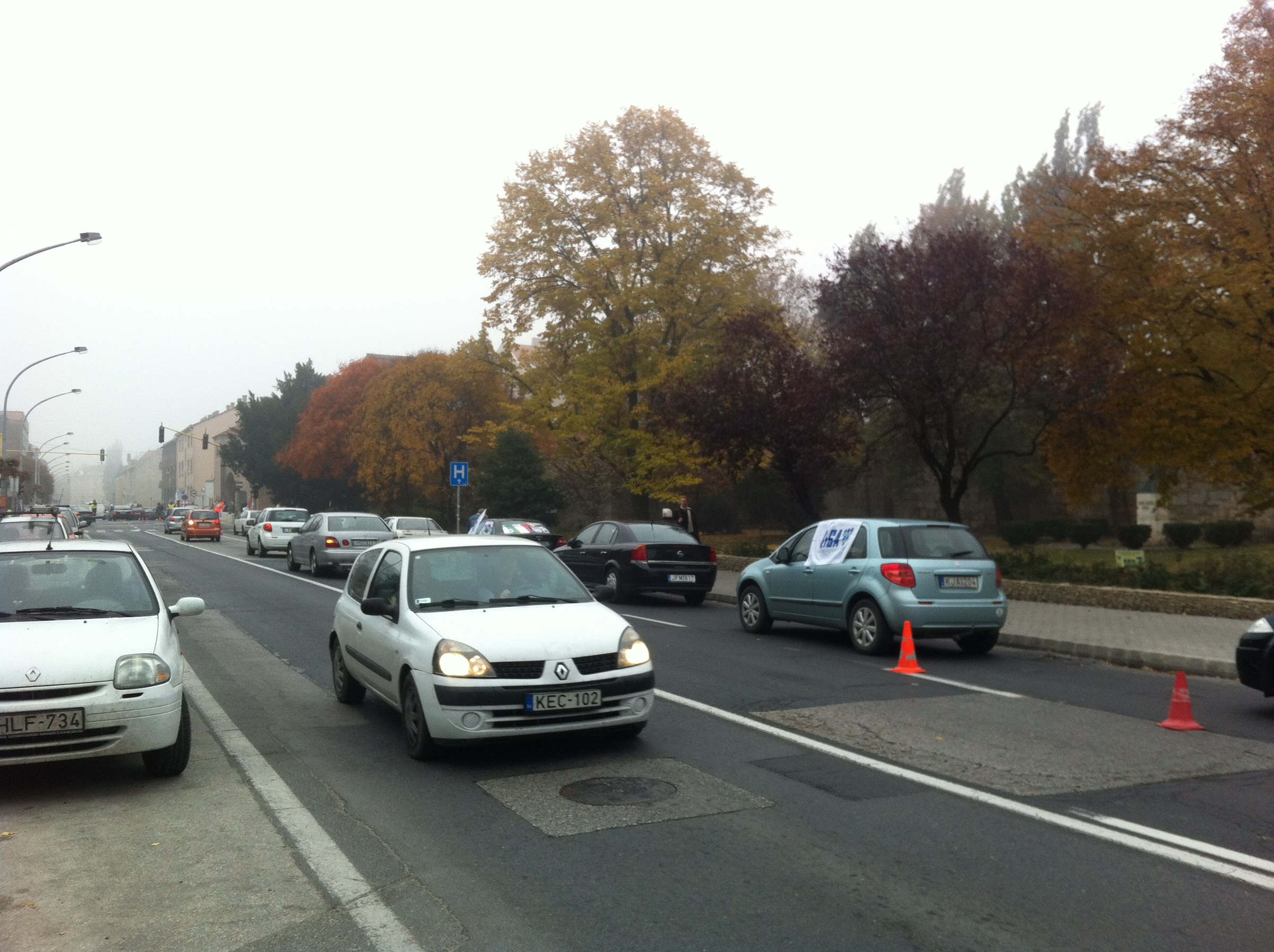 Budapesten hétvégi forgalom van, a budai oldalon legalábbis szinte üres az Alkotás út. Nincs dugó a Széll Kálmán térnél, jól járható Hűvösvölgy felől a Szilágyi Erzsébet fasor, a Margit körút, és egy perc alatt át lehet érni a Margit hídon is. Üres a budapesti belváros, mondják a City Taxi diszpécserei, mert az összes bevezető utat blokkolják a demonstrálók, a forgalom csak lassan ér be a városba.