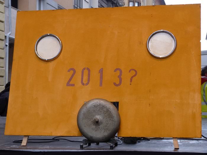 A transzparenseken többek között ezek a feliratok voltak olvashatóak: "Sok a Mekk Elek a Akácfa utcában!" és "Ti ellopjátok, mi kifizetjük!". Többen Nokiás dobozokat is hoztak magukkal...