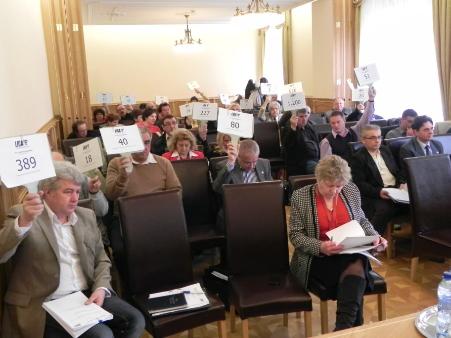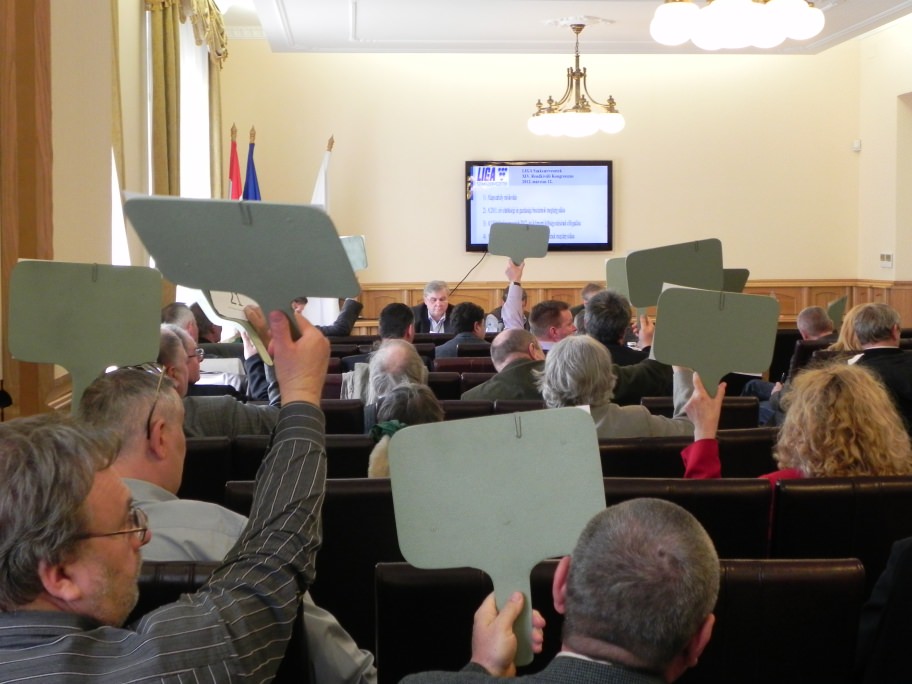 A kongresszus ezután megvitatta az elnökség 2011. évi szakmai és gazdasági beszámolóját, amely ezúttal különösen hosszúra sikeredett, hiszen nagyon mozgalmas - nehézségekben bővelkedő - évet zártunk. Miután a LIGA Szakszervezetek Számvizsgáló Bizottsága is ismertette álláspontját a gazdálkodásról, a kongresszus egyhangúan elfogadta az előterjesztést.