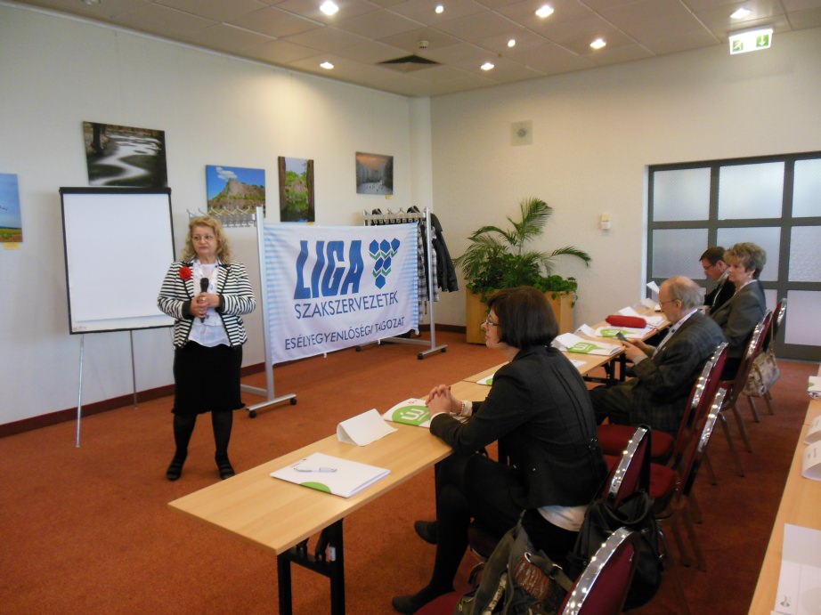 A konferencia résztvevőit Dr. Dancsóné dr. Soós Ilona, a LIGA Szakszervezetek Esélyegyenlőségi Tagozatának elnöke köszöntötte. Beszédében kiemelte, hogy a Tagozat megalakulásakor elhatározott egyik célt mára sikerült teljesíteni, hiszen ez már a negyedik ilyen témájú rendezvény az elmúlt négy évből. A munkavállalók, munkaadók és kormányzati szervek képviselőinek figyelmét egyaránt fel kell tudni kelteni az esélyegyenlőségi problémákra, mind itthon, mind külföldön.