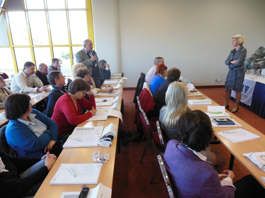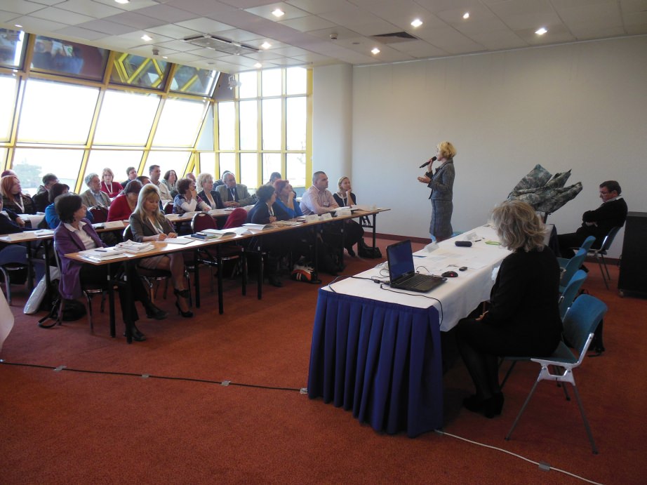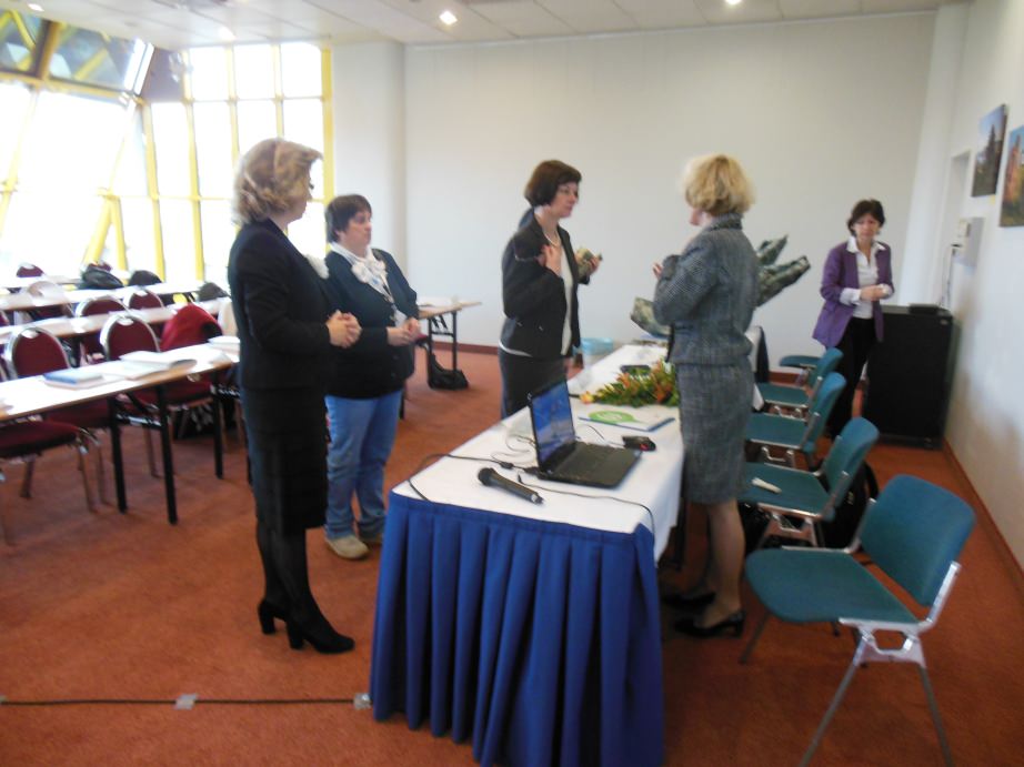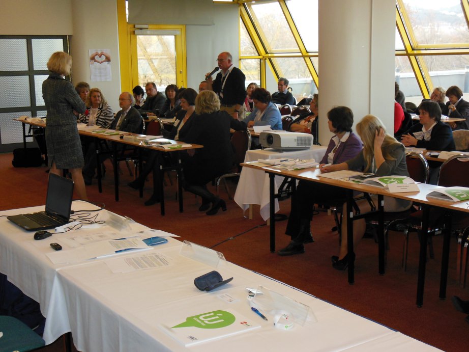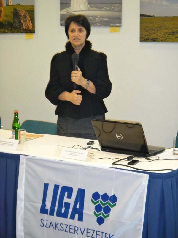 A női foglalkoztatás tendenciáiról Varga Zsoltné Szalai Piroska, a Nemzetgazdasági Minisztérium A nők munkaerőpiaci helyzetének javításáért felelős miniszteri biztosa tartott előadást. A hallgatóság megismerkedett a minisztérium által végzett munkaerőpiaci felmérések adataival, így például a 16-54 éves magyarországi nők foglalkoztatási rátájával korcsoportonként és végzettség szerint, illetve a munkaidő tartama és a munkavégzés helye szerinti megosztása alapján.