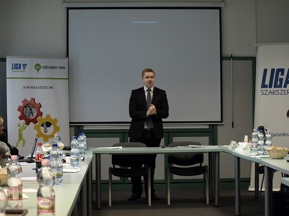Második előadó dr. Ferencz Jácint, a Széchenyi István Egyetem Deák Ferenc Állam- és Jogtudományi Kar egyetemi tanársegédje. Dr. Ferencz Jácint nem csak tanít, hanem mint ügyvéd is folyamatosan foglalkozik a munkajoggal és az új módosításokkal. Véleménye szerint az új Munka törvénykönyv megalkotása időszerű volt, de a mostani szabályozások inkább a keretet adják meg és a részletek kidolgozását a munkaadókra és a munkavállalók képviselőire bízza. Az azért látható, hogy az új törvényekben a munkaadók érdekei érvényesülnek inkább, és ezt mindenképp finomhangolni kell.