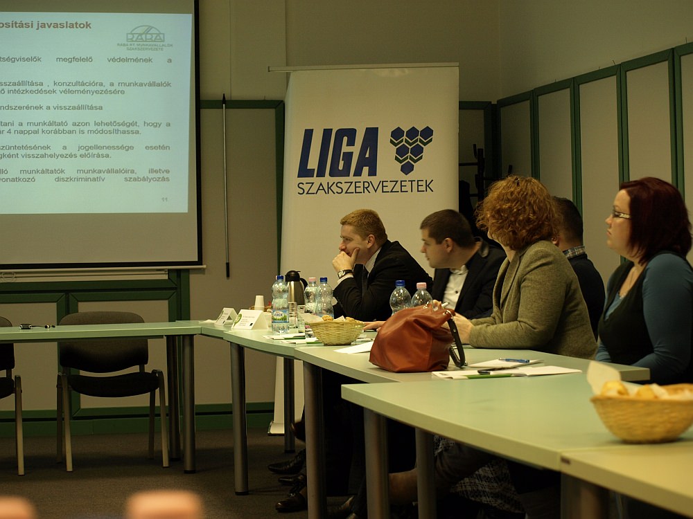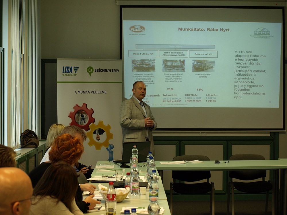 A munkavállalók szemszögéből Győrben Alper László, a Rába Munkavállalók Szakszervezetének elnöke tartott előadást és beszámolót az eddigi tapasztalatokról és eredményekről. Elsőként röviden bemutatta a céget és a szakszervezet múltját foglalta össze. Majd az előadásában kitért az új Munka törvénykönyv alkalmazásával kapcsolatos tapasztalatokra. Véleménye szerint az új jogszabályok gyors bevezetése miatt sok a bizonytalanság és hiányoznak a kialakult joggyakorlatok. Előadásának végén röviden összefoglalta módosítási javaslataikat.