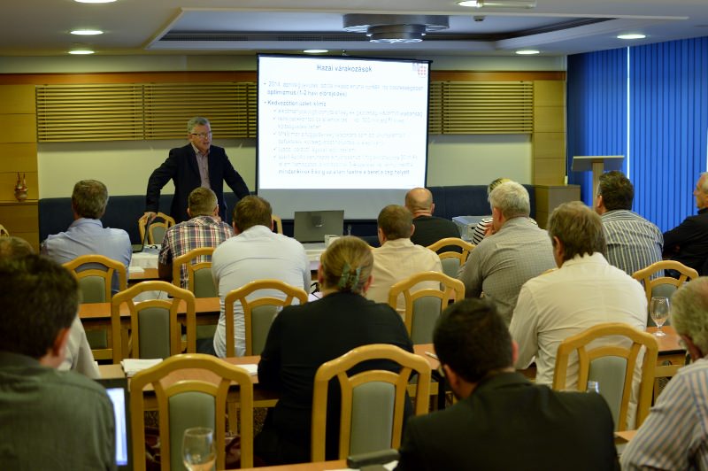 Az első előadó Vértes András, a GKI Gazdaságkutató Zrt. vezetője volt. Ő a 2014-es GDP növekedést 3 százalékosra becsülte, azonban, tette hozzá, ez egyedi tényezőkből származó kiugró eredmény. Valójában a jó eredmény egyrészt az alacsony a bázisnak, másrészt az európai 6-7 milliárd eurós pénzbeáramlásnak köszönhető. Ez utóbbi 2016-ra másfél milliárd euróra lecsökken, így 2015-re 2 százalék GDP növekedés várható. Ma szinte 0 százalék az infláció, amiben fontos szerepet kapott a rezsicsökkentés, még ha jórészt a világpiaci energiaár-csökkenést adta el rezsicsökkentésként a magyar kormány. Az előadó a Parlament Költségvetési Tanácsának ülésén is figyelmeztetett, ilyen ártrendek nehezen tudnak fennmaradni, jelenleg a magyar háztartási energia csak Bulgáriában és Romániában olcsóbb, és sajnos, ez az alacsony ár nem a hatékonyságjavulásnak köszönhető.