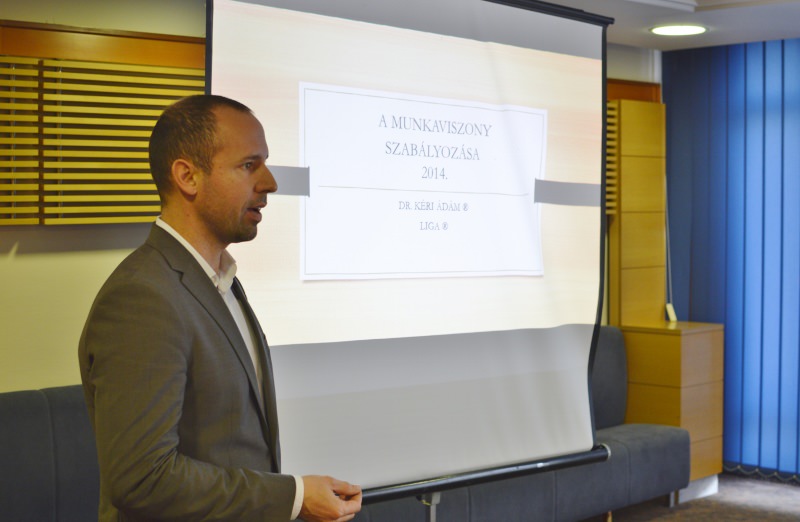 A nap lezárásaként Dr. Kéry Ádám jogi előadását hallhatták az érdeklődők. Az előadó a Munka Törvénykönyve egyes rendelkezéseiről beszélt. Elmondta, az új Munka törvénykönyve számos területen méltánytalanul szűkítette a munkavállalók jogait, s eszközök nélkül, kiszolgáltatott pozícióban hagyta őket a válság által megtépázott munkaerőpiacon, majd összehasonlította az Európai trendeket. Megállapította, hogy a munkavállalói jogok szűkítése a legtöbb európai országban megtörtént a gazdasági világválság utáni években. Ezt követően a magyar törvényhozás egy-egy problémás kérdésére tért ki.
