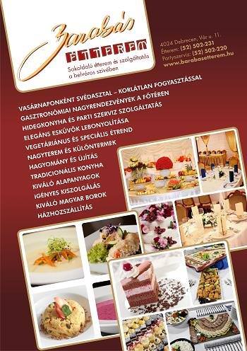 Sokoldalú étterem a belváros szívében - A Barabás Étterem nevéhez hosszú évek óta számos hagyományteremtő esemény és rendezvény kapcsolódik. Debrecenben mára elmaradhatatlan programmá vált a Pulykanapok, a Töltött Ételek Hétvégéje, a Márton nap, de hónapról-hónapra nagy sikere van a Vacsoraszínháznak, a Borvacsorának vagy a Francia Estnek is. Az étteremben egyszerre van otthon a hagyomány és az újítás.