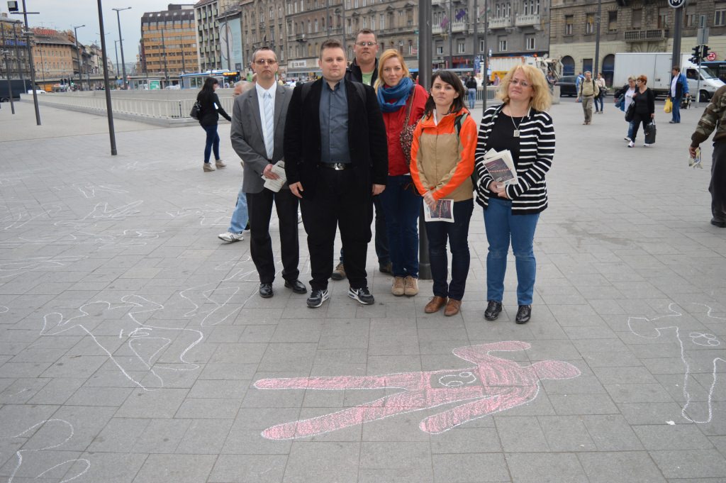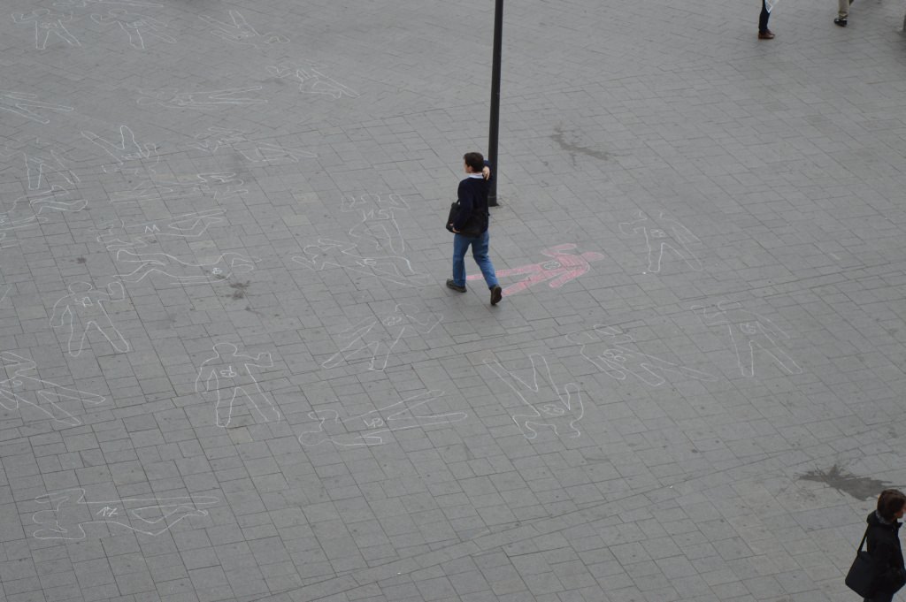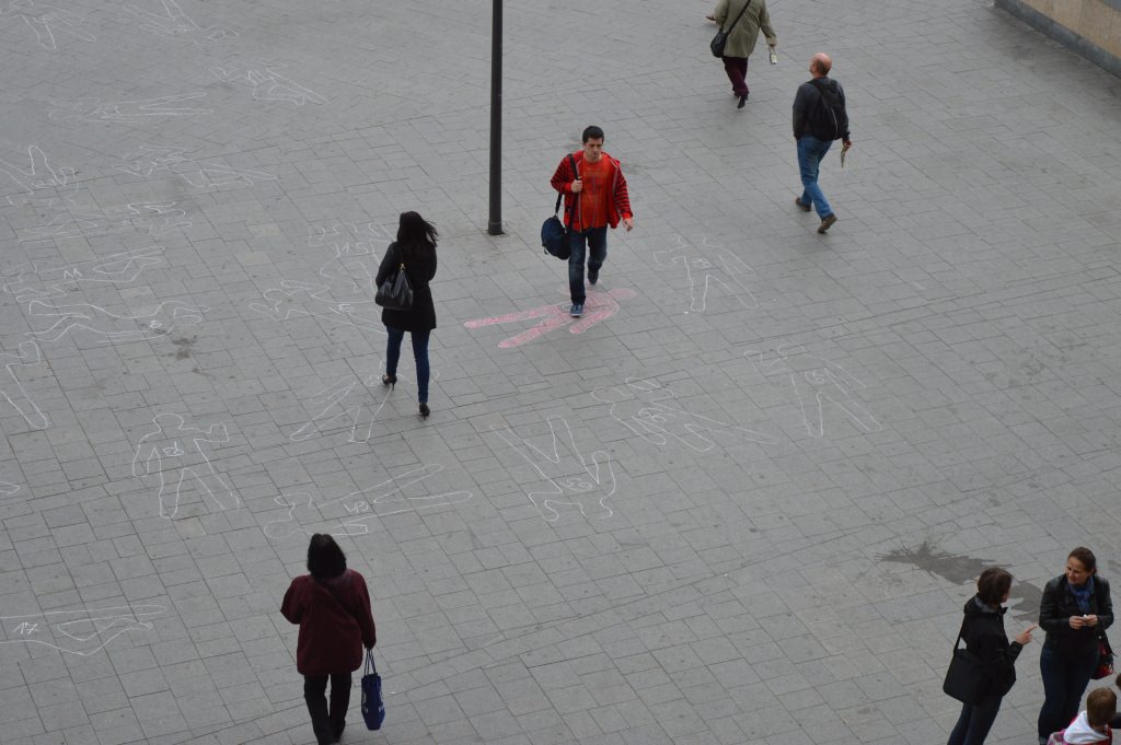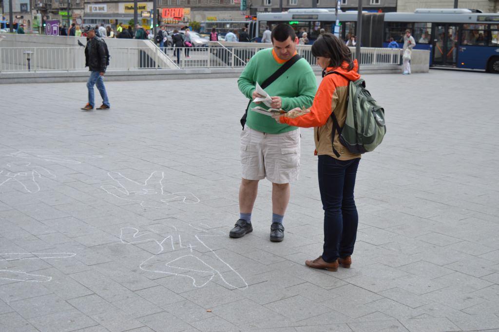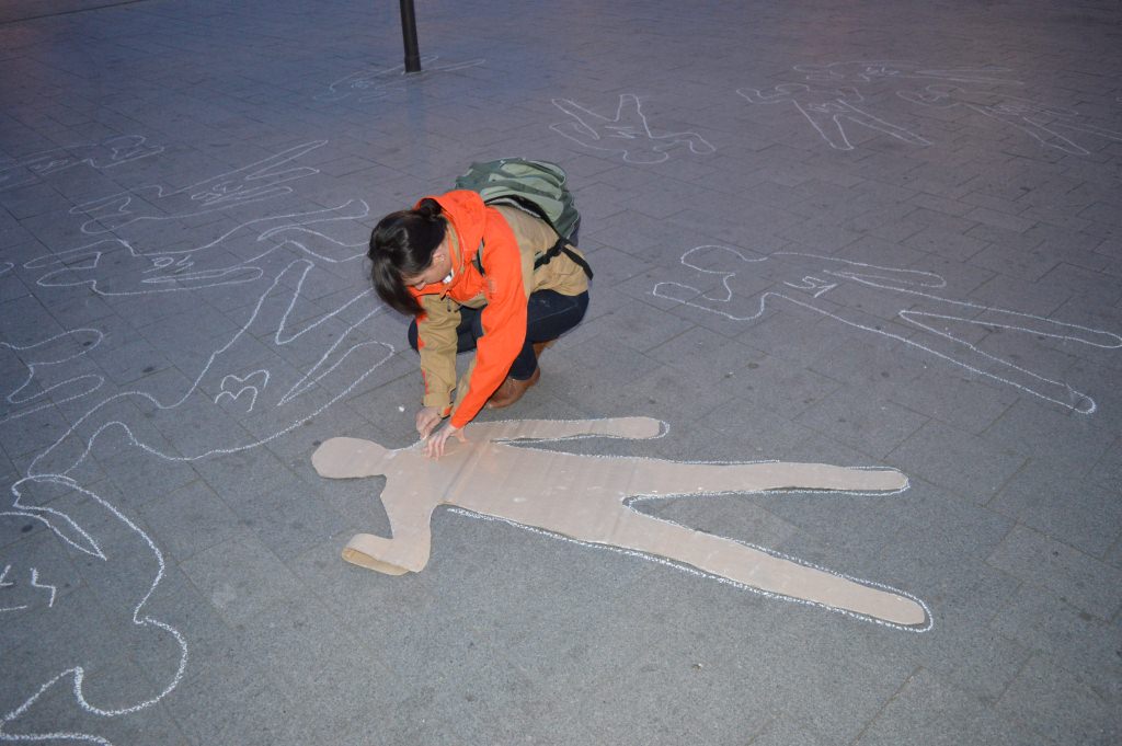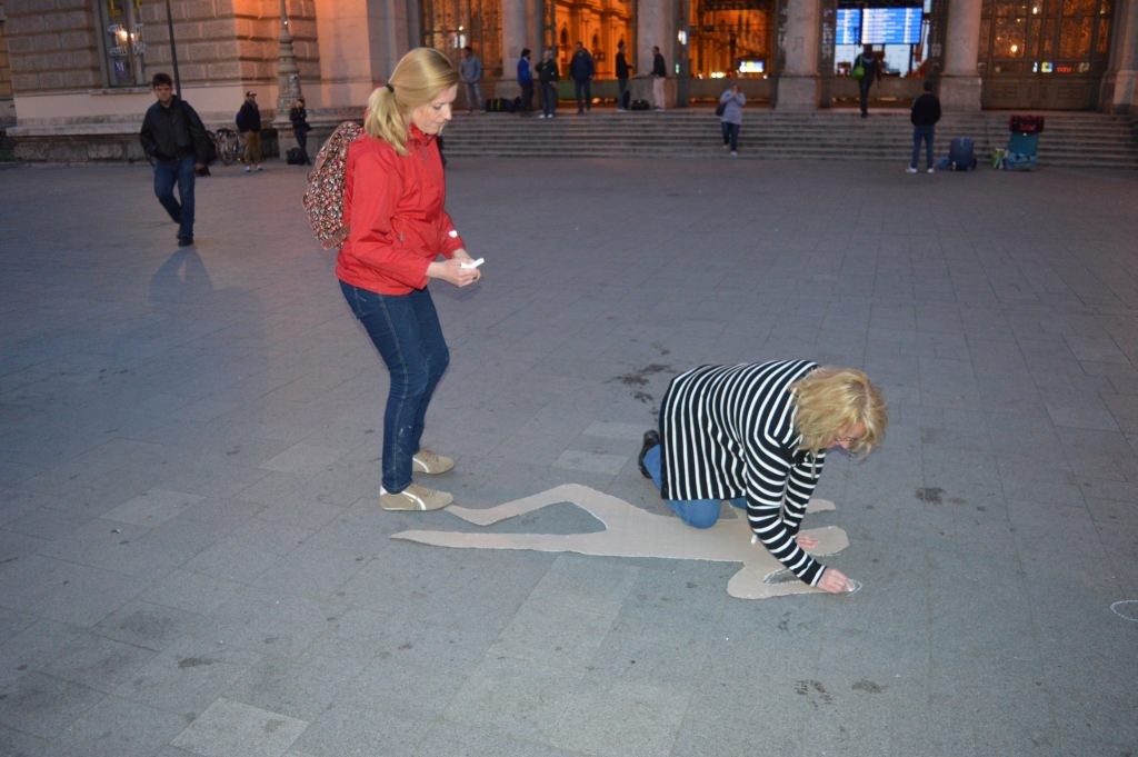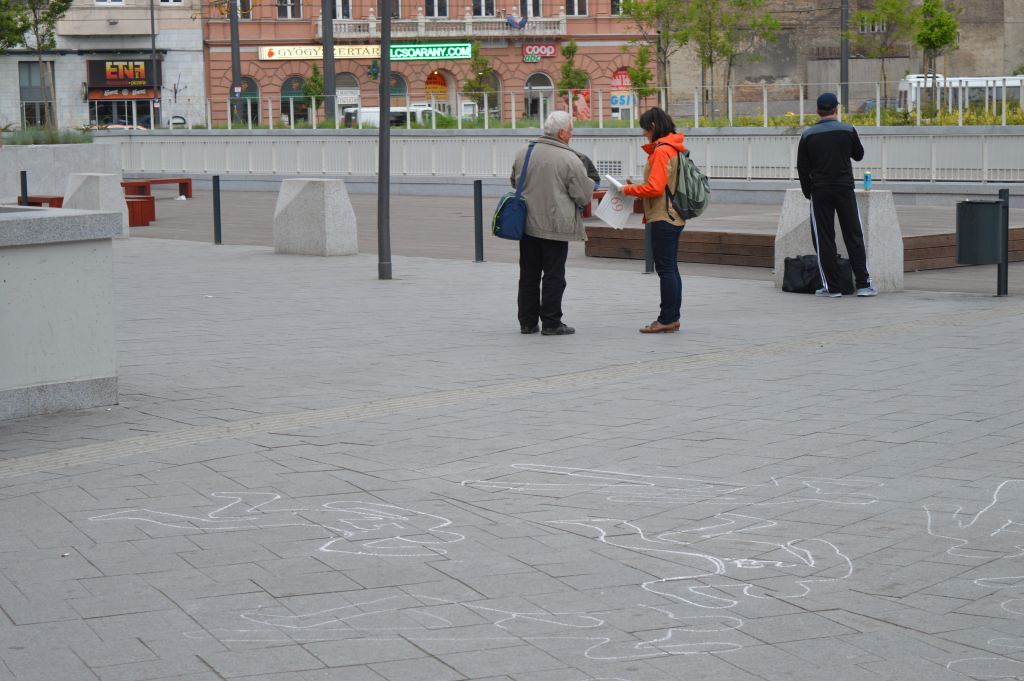 A Keleti pályaudvar előtti téren a LIGA aktivistái 69 emberi körvonalat rajzoltak fel, sorszámozták őket, és tájékoztatták az arra járókat a tavalyi baleseti statisztikákról. Az akció szlogenje: ne lépj át rajta!