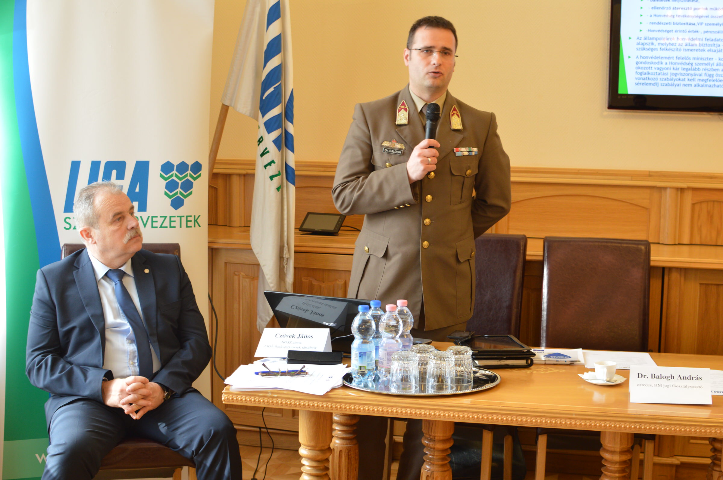 A délután folyamán két szakelőadó előadását hallgathatták meg a résztvevők. Dr. Balogh András ezredes jogi főosztályvezető a honvédelmi törvény módosításairól beszélt, valamint a „rendszeres sporttevékenységen keresztül a honvédelmi szempontból hasznosítható tudás megszerzése lehetőségének biztosítása” érdekében alkotott Sportszövetségi törvényről. Ezt követően részletezte milyen kártérítést kaphatnak a Honvéd Egészségpénztárban ragadt pénzük után a katonák és a rendőrök. Elmondta, a honvédelmi tárca kidolgozott egy olyan javaslatot, amelynek értelmében a honvédség és a rendőrség saját alkalmazottainak kártérítést fizet. Továbbá arról beszélt, hogy a tárca hogyan rendezte a hadigondozás problémakörét.